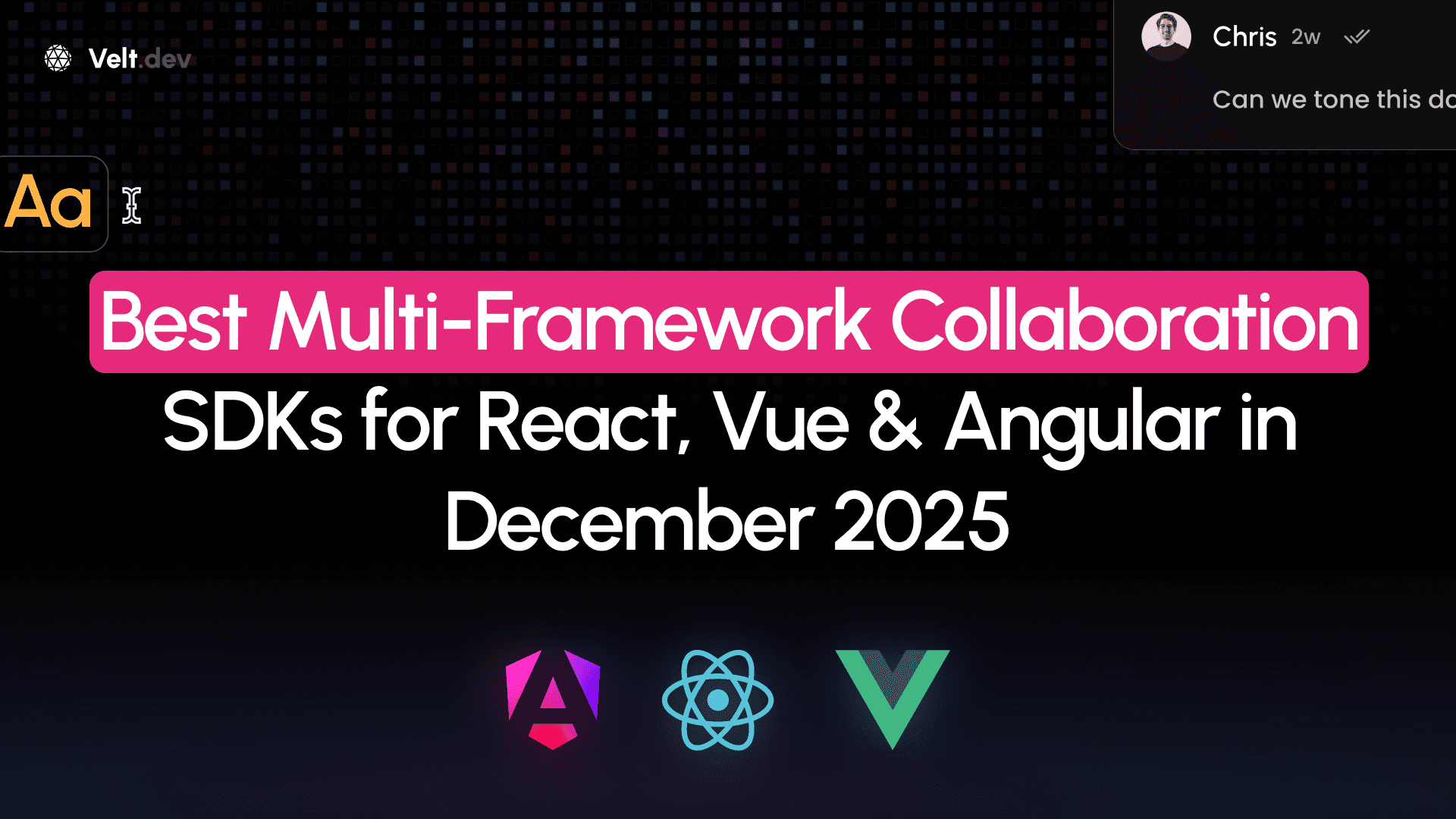 Multi-framework collaboration SDKs add real-time features like comments and presence across React, Vue, Angular, and vanilla JavaScript without months of custom development